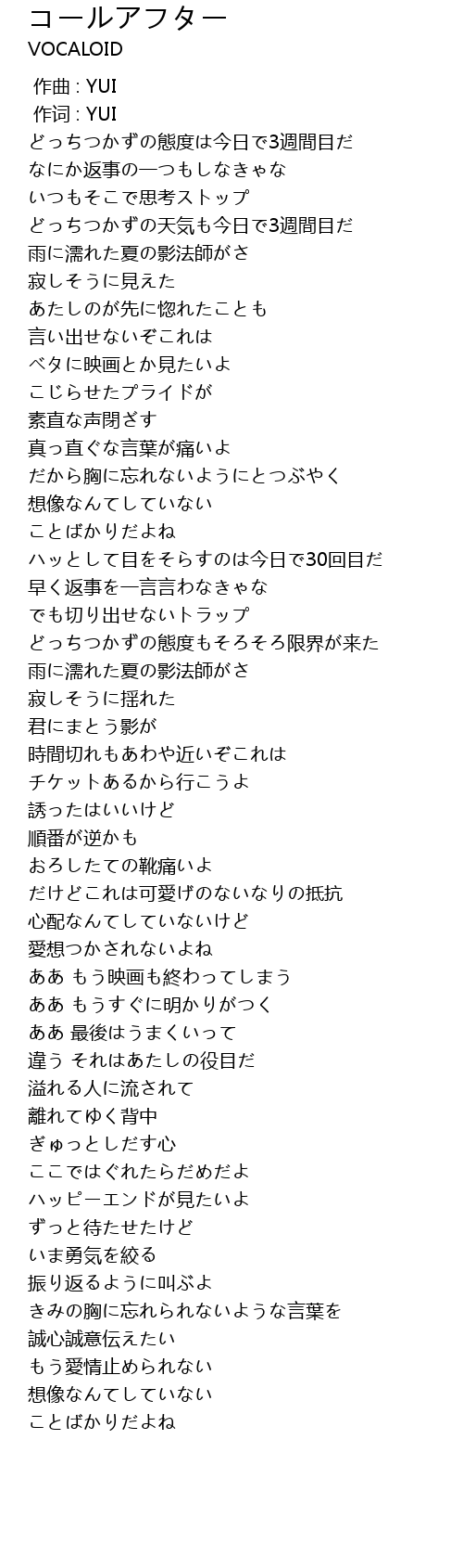 | Song | コールアフター |