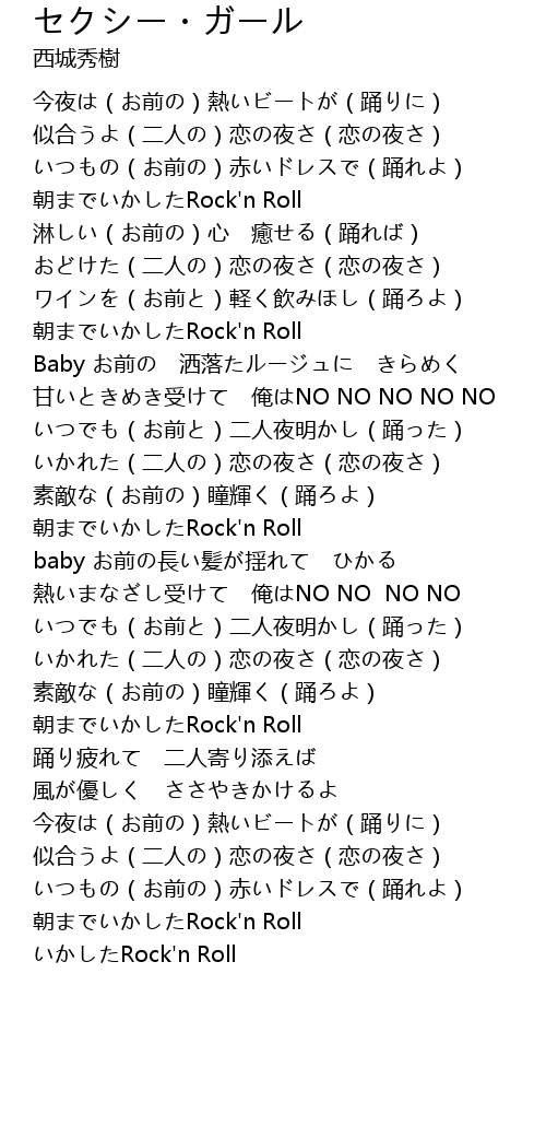| [00:16.60] | 今夜は(お前の)熱いビートが(踊りに) |