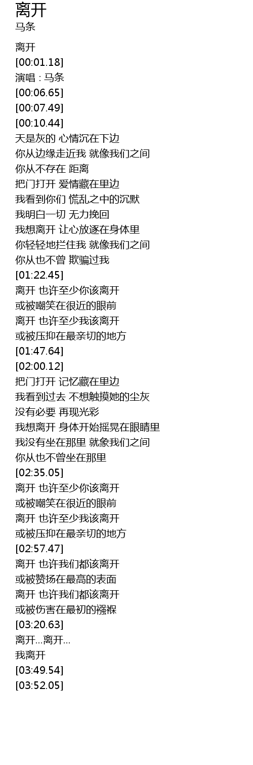 | [00:00.09] | 离开 |