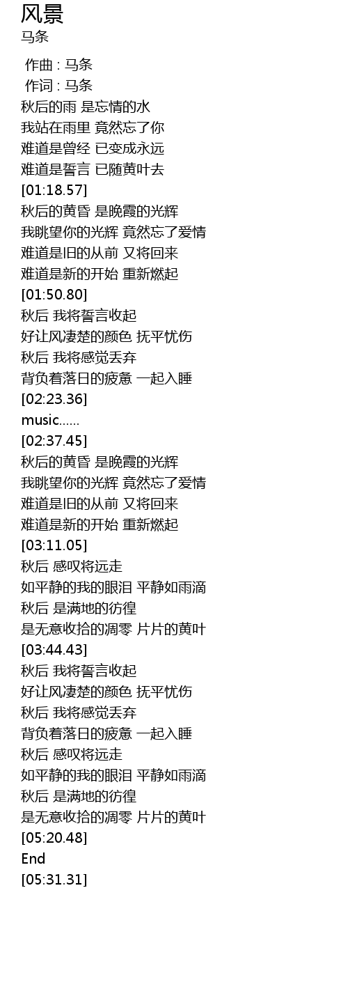 | [00:00.00] | 作曲 : 马条 |