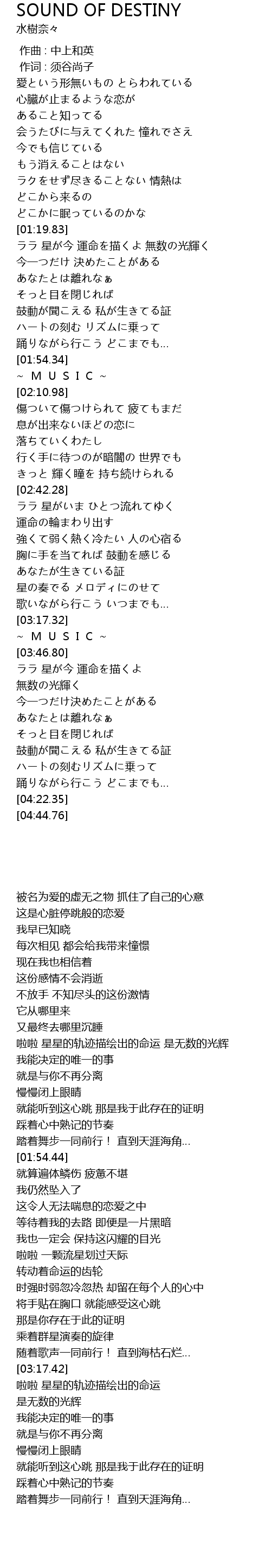 | [01:19.93] | ララ 星が今 運命を描くよ 無数の光輝く |
