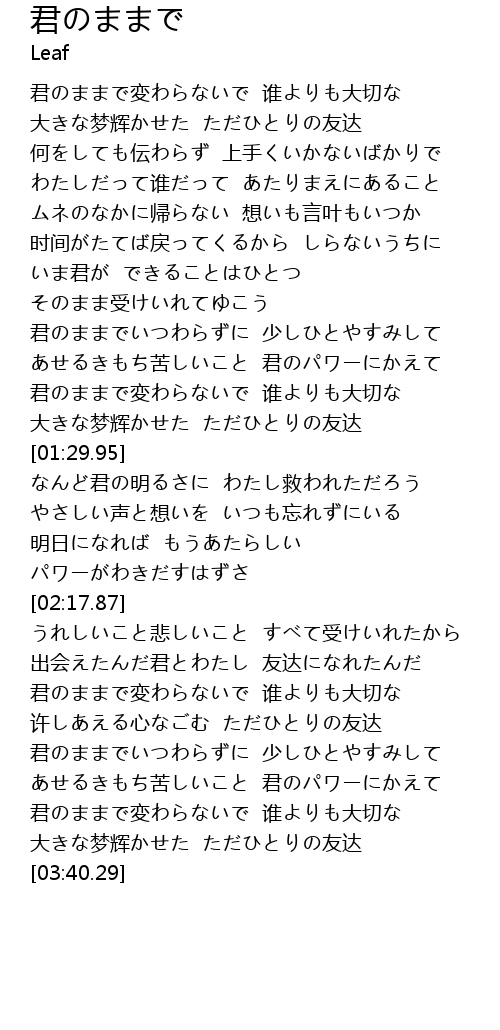 | [03:11.04] | 君のままでいつわらずに 少しひとやすみして |