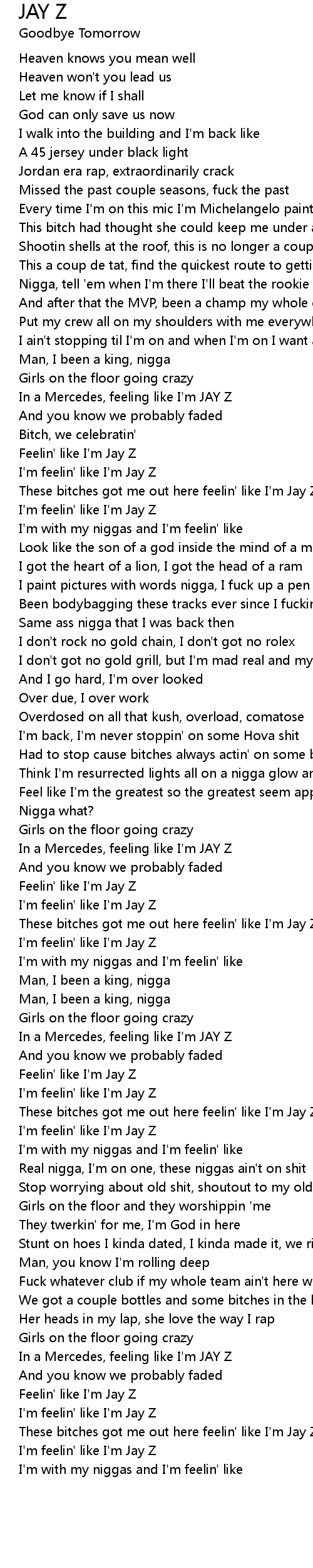 I'm feelin' like I'm Jay Z |