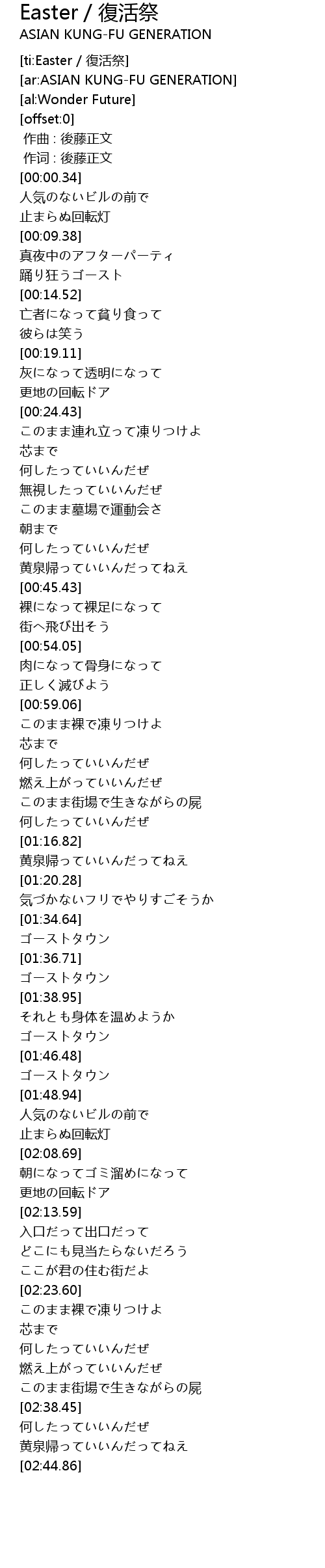 | [02:34.15] | このまま街場で生きながらの屍 |