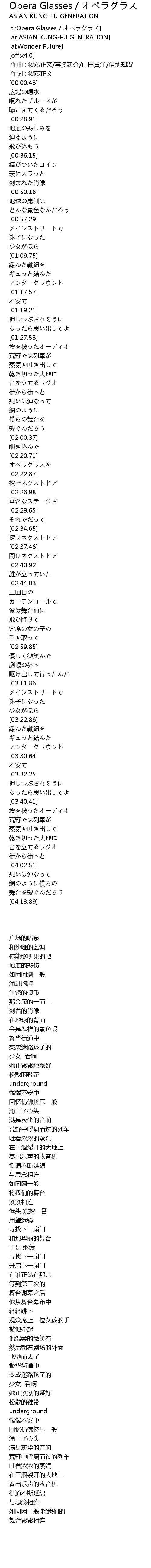| [00:00.00] | 作曲 : 後藤正文/喜多建介/山田貴洋/伊地知潔 |