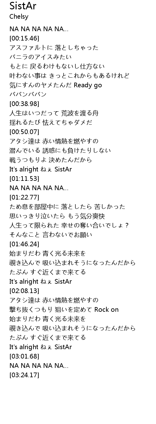 | [02:57.41] | It's alright ねぇ SistAr |