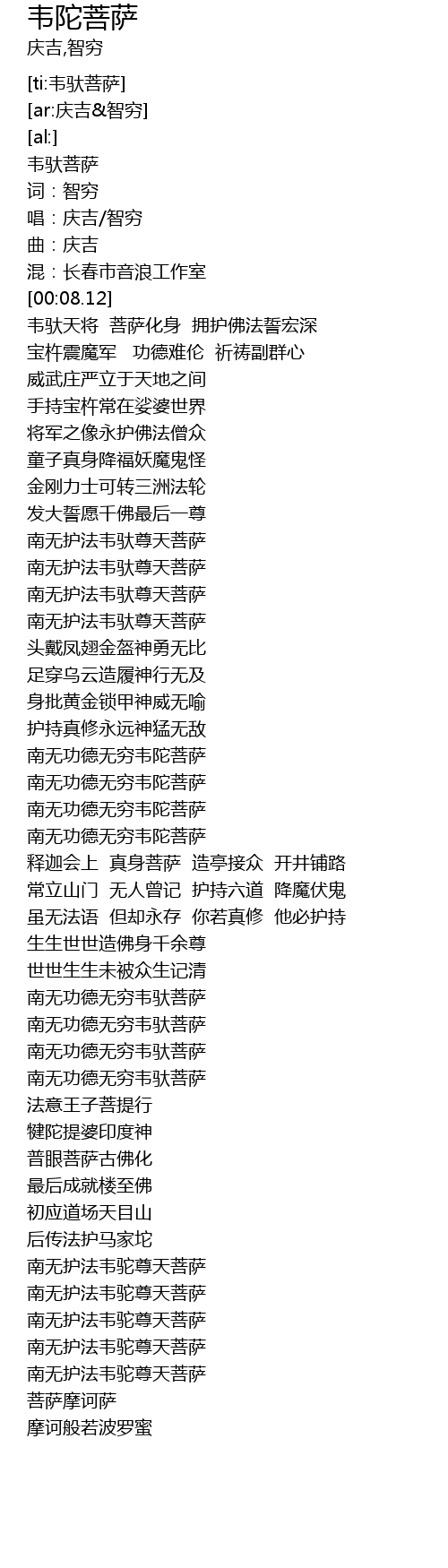 | [02:32.40] | 南无功德无穷韦陀菩萨 |
