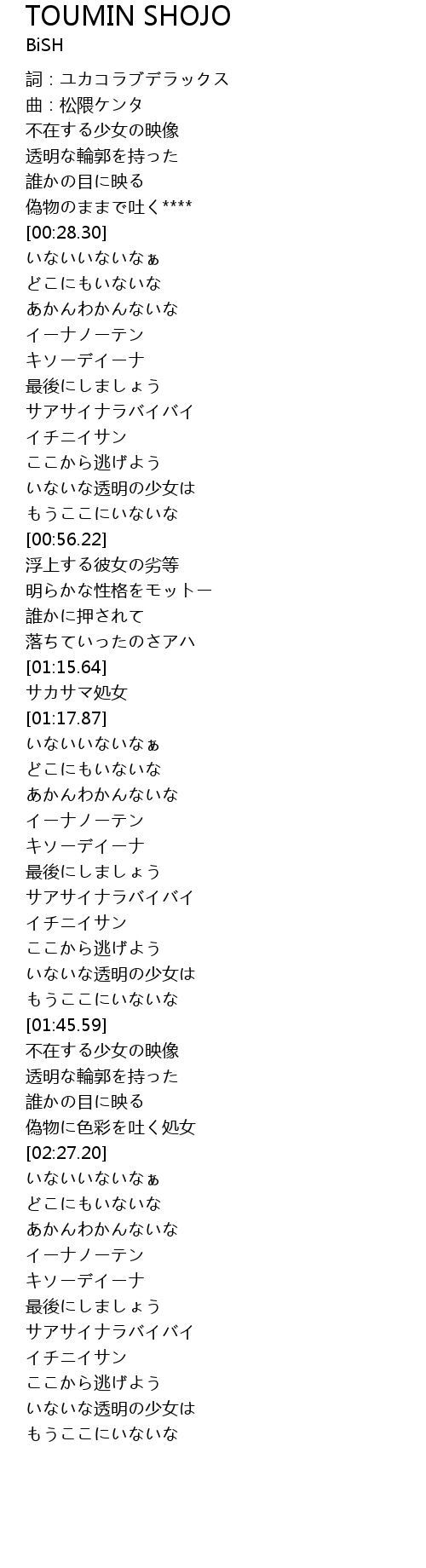 | [02:48.50] | いないな透明の少女は |