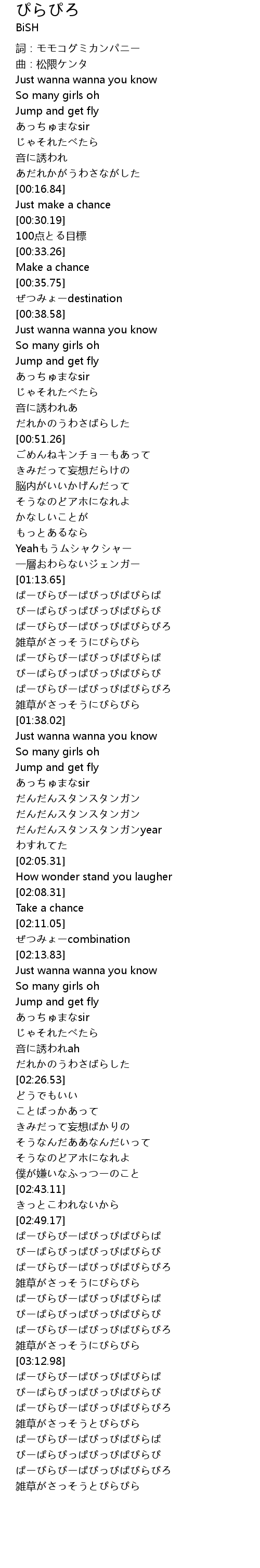 | [03:16.08] | ぱーぴらぴーぱぴっぴぱぴらぱ |