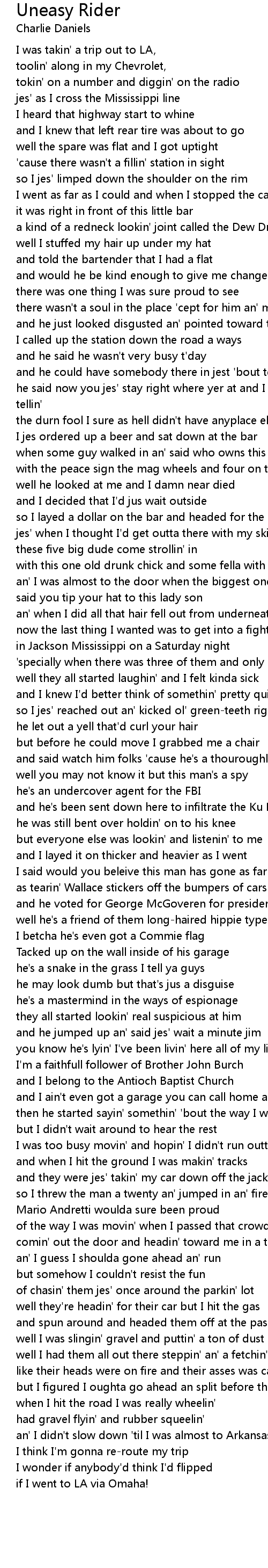 an' I didn't slow down 'til I was almost to Arkansas |
