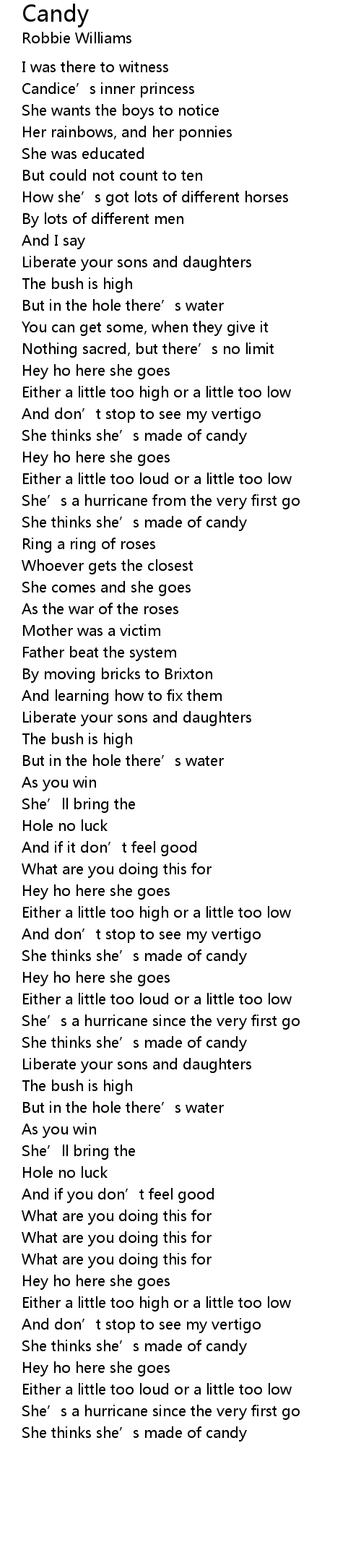| She thinks she' s made of candy | |