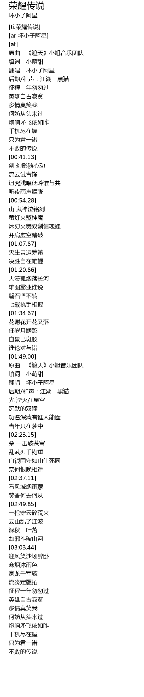 | [01:52.50] | 原曲:《遮天》小旭音乐团队 |