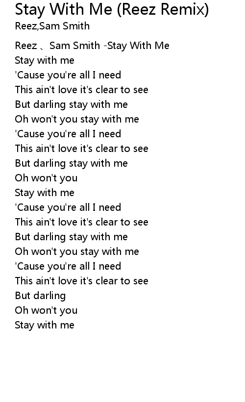 | [00:00.269] | Reez Sam Smith Stay With Me |