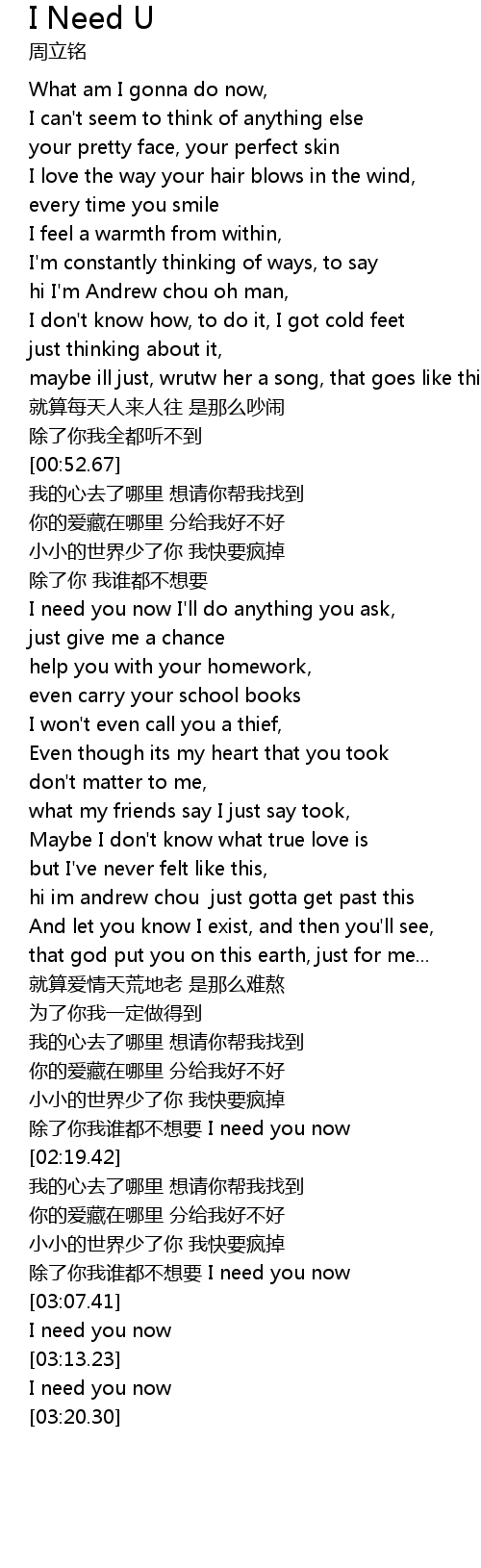 | [03:00.09] | chu le ni wo shui dou bu xiang yao I need you now |