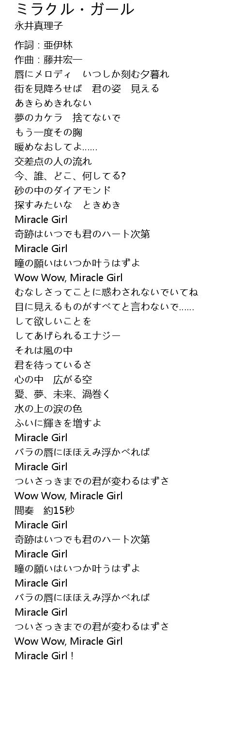 | [03:19.91] | Wow Wow, Miracle Girl |