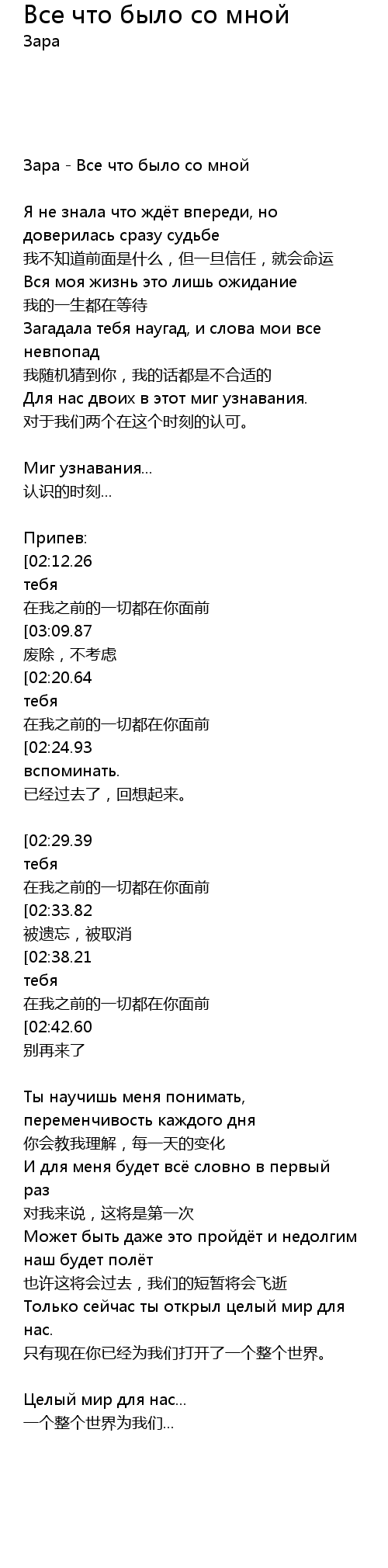 | [03:36.01][02:38.21][01:23.95] | Всё, что было со мною до тебя |
