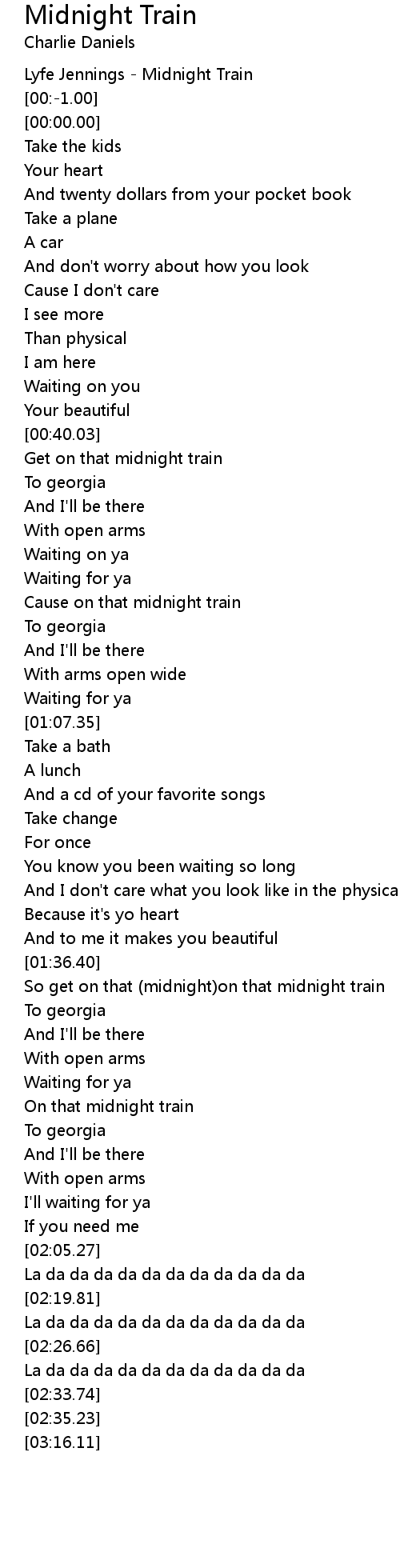 So get on that (midnight)on that midnight train |