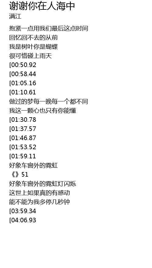 | [04:19.83][04:06.93] | 谢谢你在人海之中 |