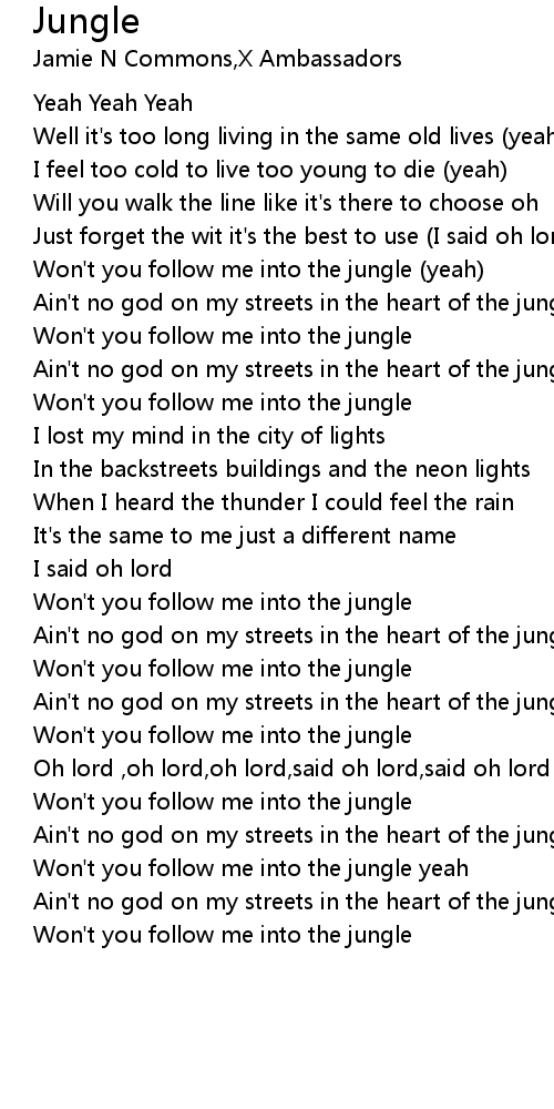 Won't you follow me into the jungle yeah |
