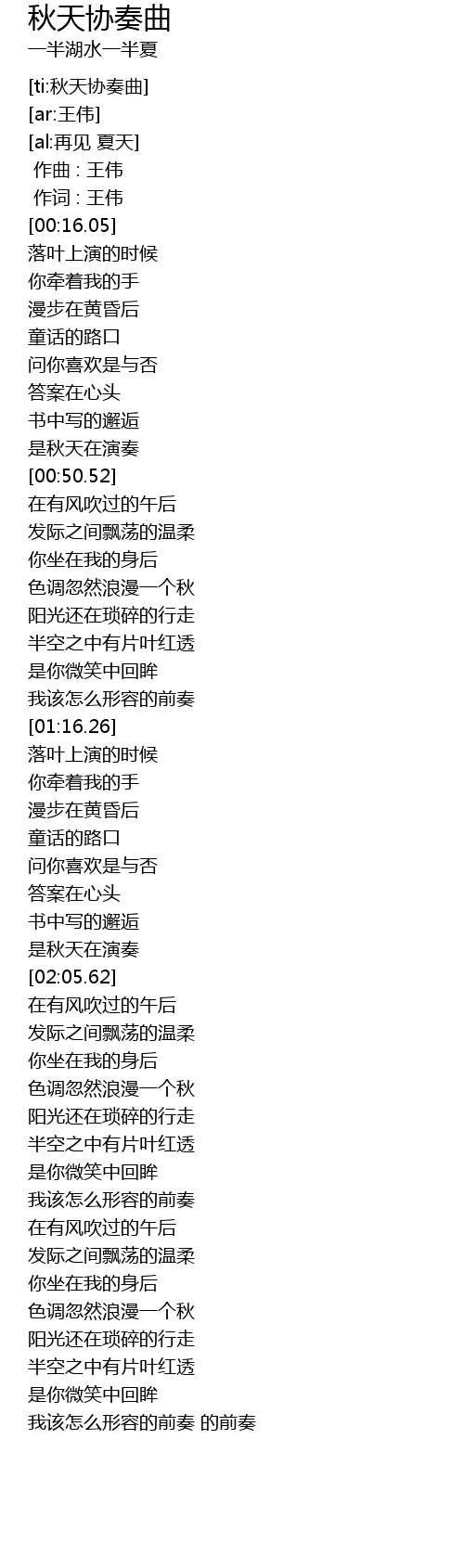 | [02:16.59] | 色调忽然浪漫一个秋 |