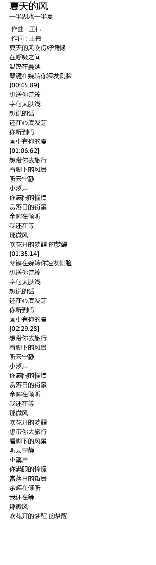 | [00:27.17] | 夏天的风吹得好慵懒 |