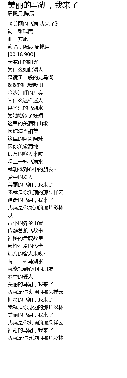 | [03:32.180] | 美丽的马湖,我来了 |