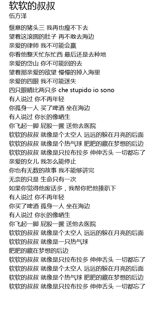 | [02:00.54] | 软软的叔叔 就像是个热气球 肥肥的藏在梦想的后边 |