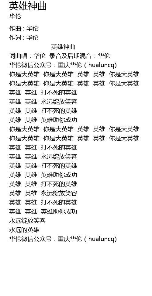 | 你是大英雄 你是大英雄 英雄 英雄 你是大英雄 | |