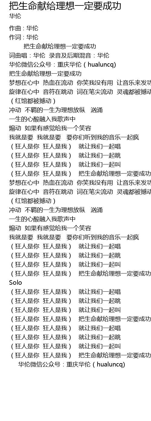 | (狂人是你 狂人是我) 把生命献给理想一定要成功 | |