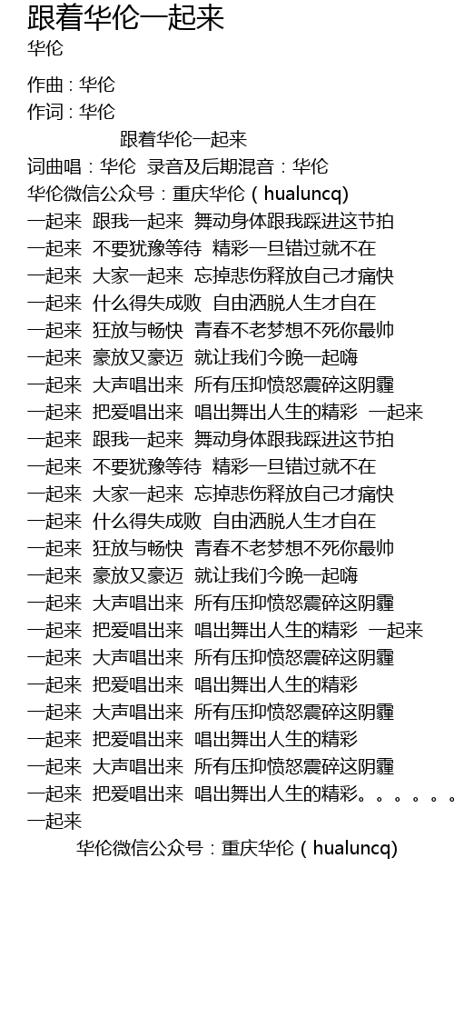 | cí qǔ chàng: huá lún lù yīn jí hòu qī hùn yīn: huá lún huá lún wēi xìn gōng zhòng hào: chóng qìng huá lún hualuncq | |