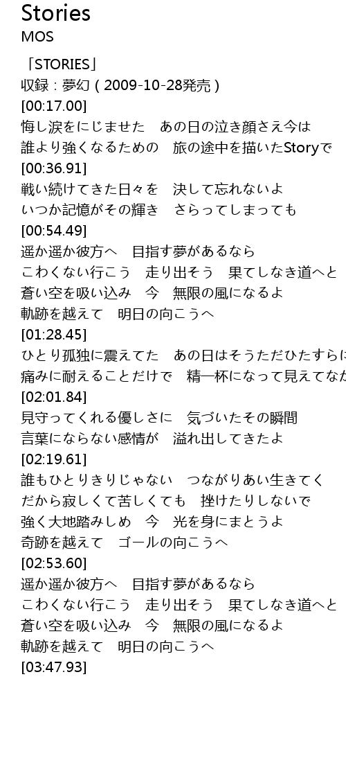 | [03:39.01] | 軌跡を越えて 明日の向こうへ |