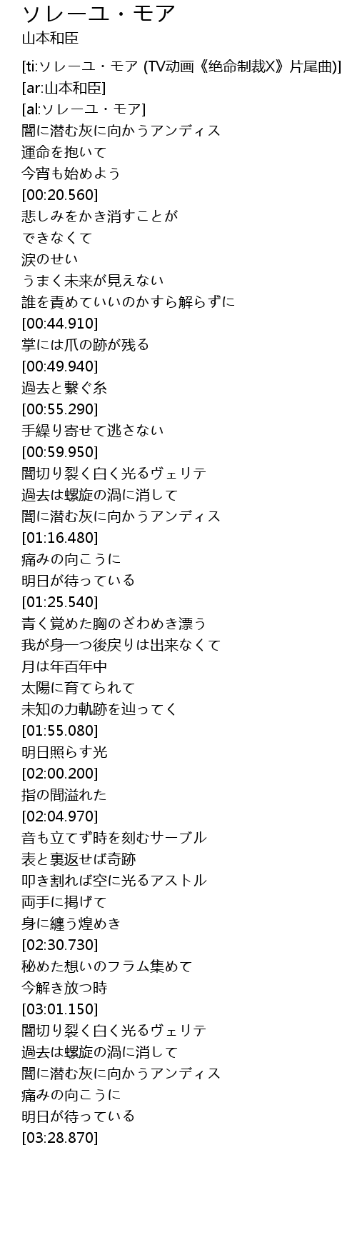 | [ti:ソレーユ・モア (TV动画《绝命制裁X》片尾曲)] | |