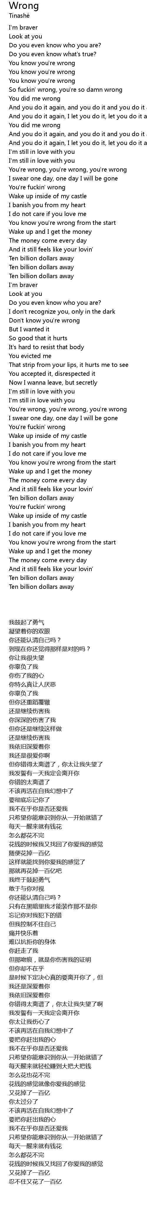 | [00:40.22] | You know you're wrong |