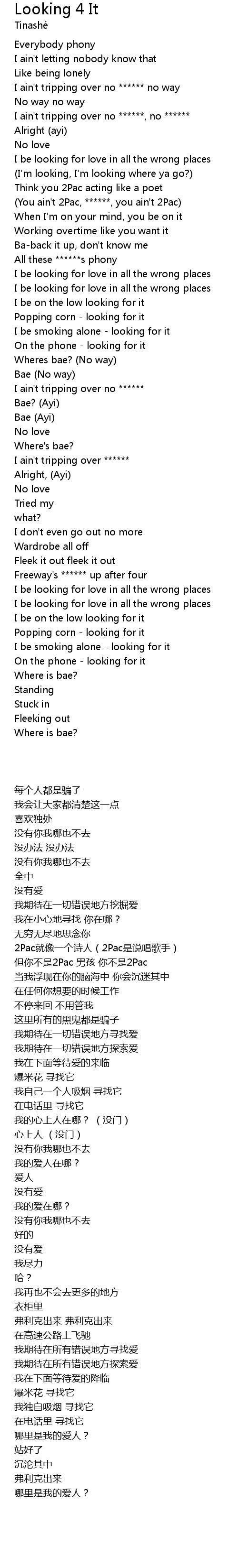 | [00:36.58] | I ain't tripping over no ******, no ****** |