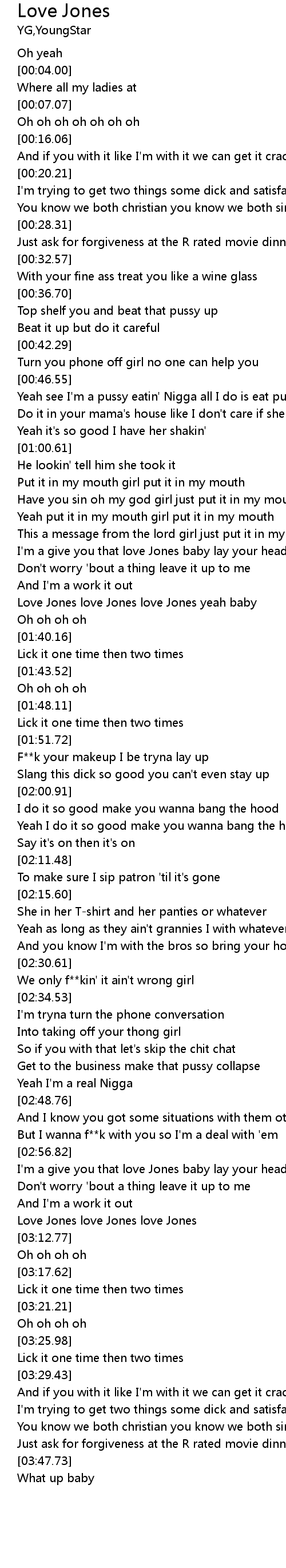 | [01:29.48] | Love Jones love Jones love Jones yeah baby |