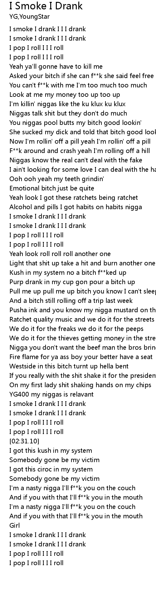 | [00:53.09] | F**k around and crash yeah I'm rolling off a hill |