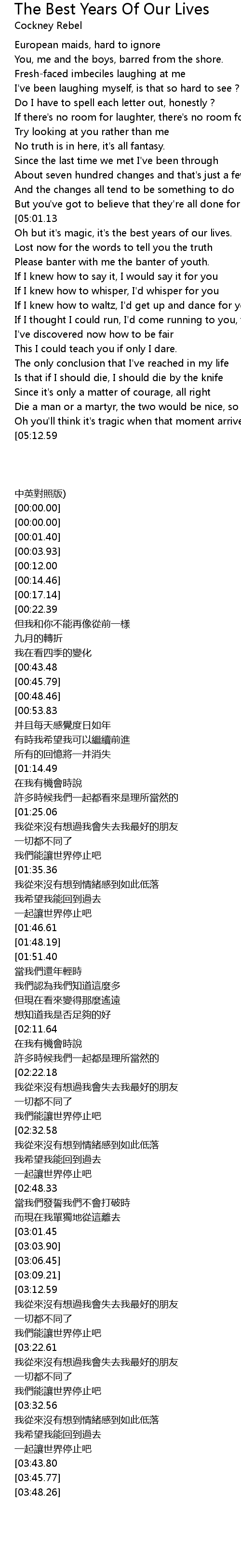[04:47.95][05:12.59] Oh, oh but it's magic, it's the best years of our lives.