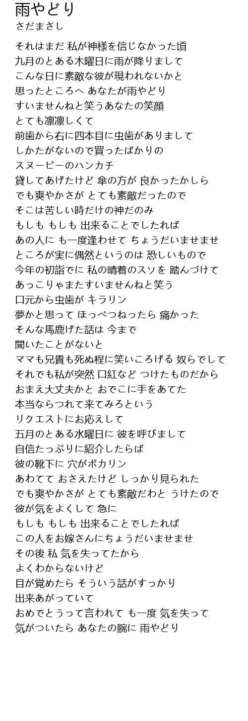 | Song | 雨やどり |