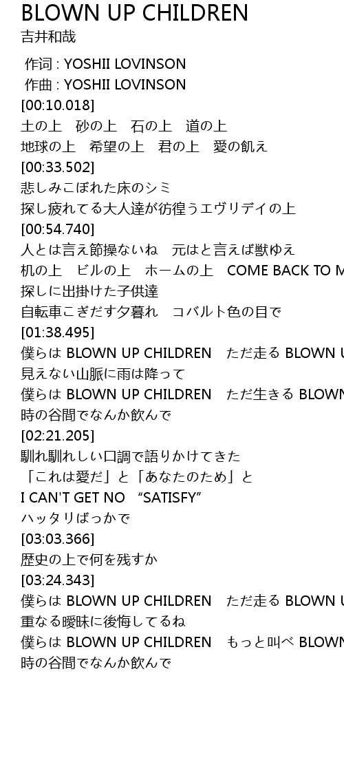 | [03:24.500] | 僕らは BLOWN UP CHILDREN ただ走る BLOWN UP CHILDREN |