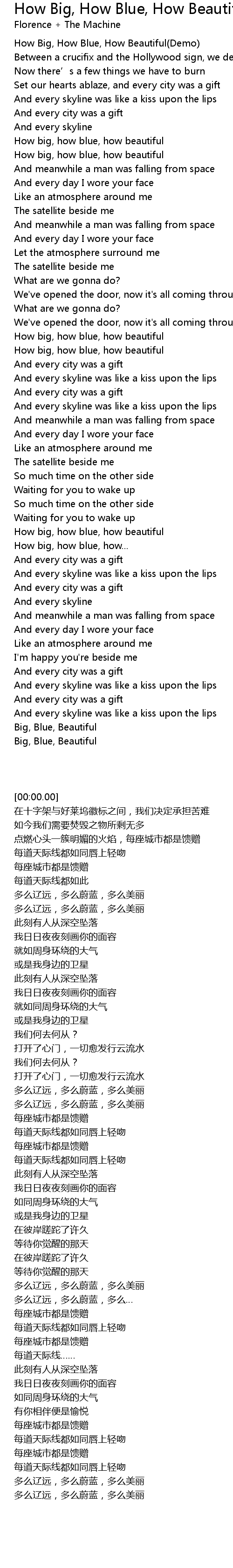 | [00:00.00] | How Big, How Blue, How Beautiful(Demo) |