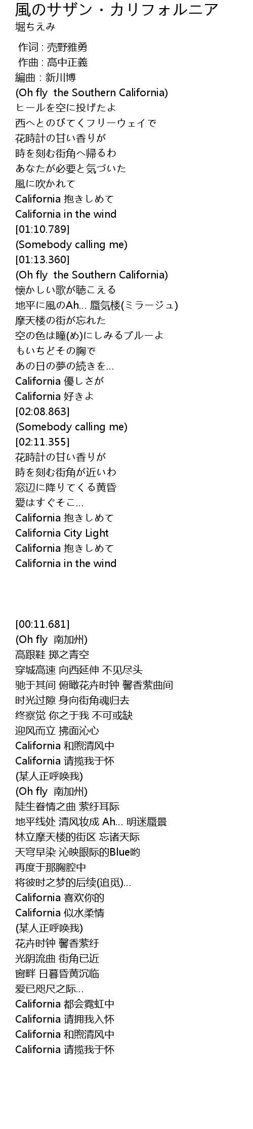 | [00:35.057] | 西へとのびてくフリーウェイで |