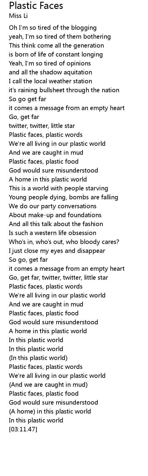 Plastic faces, plastic words |