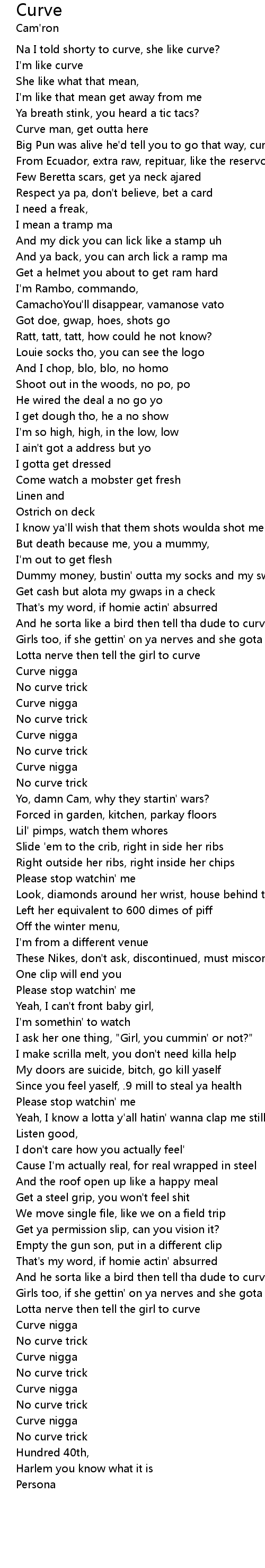 And he sorta like a bird then tell tha dude to curve |
