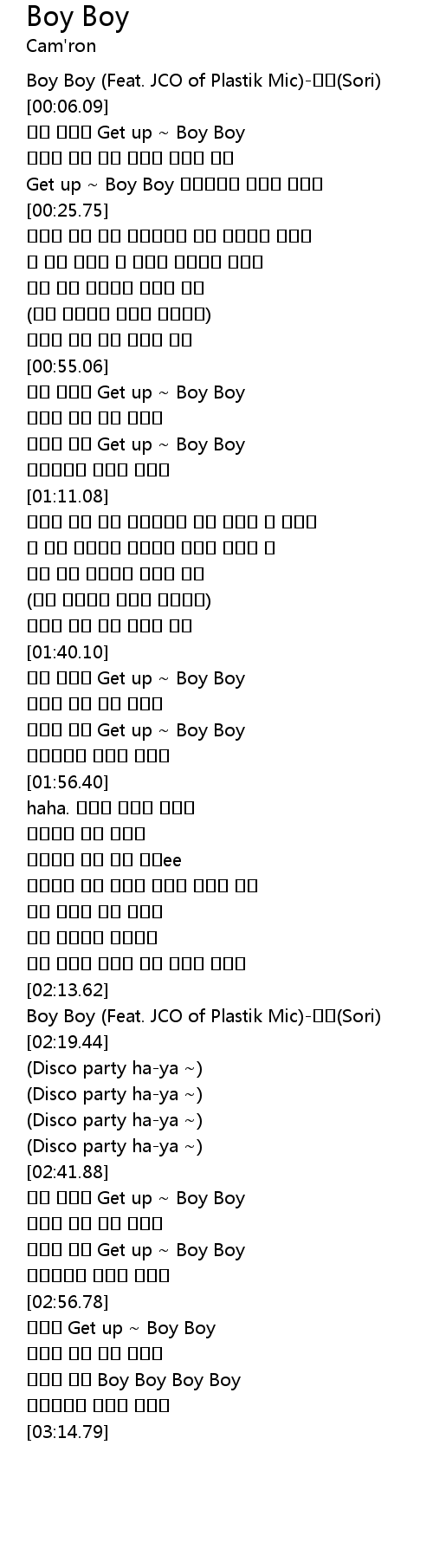 | [00:03.03] | Boy Boy (Feat. JCO of Plastik Mic)-소리(Sori) |