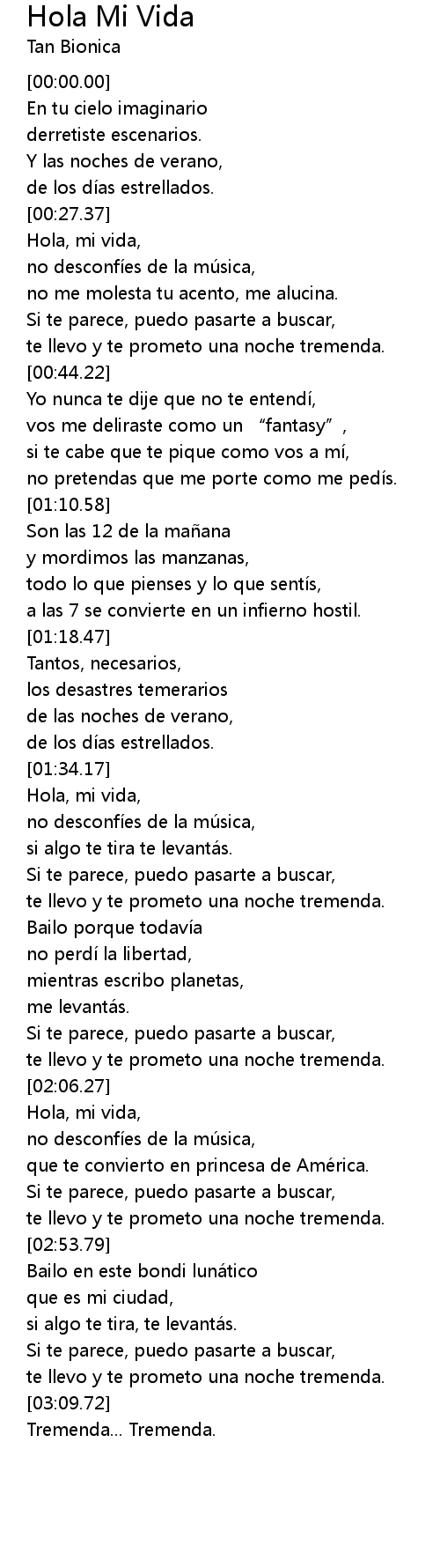| [00:32.31] | no me molesta tu acento, me alucina. |