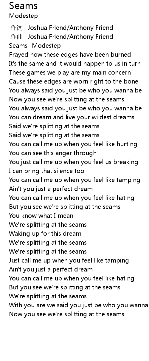 | [00:38.09] | Now you see we' re splitting at the seams |