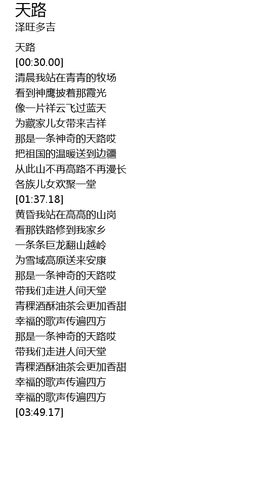 | [02:23.88] | 那是一条神奇的天路哎 |
