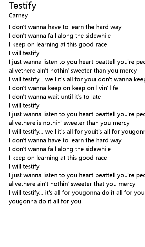 I will testify... well it's all for youi don't wanna keep on livin' my way |