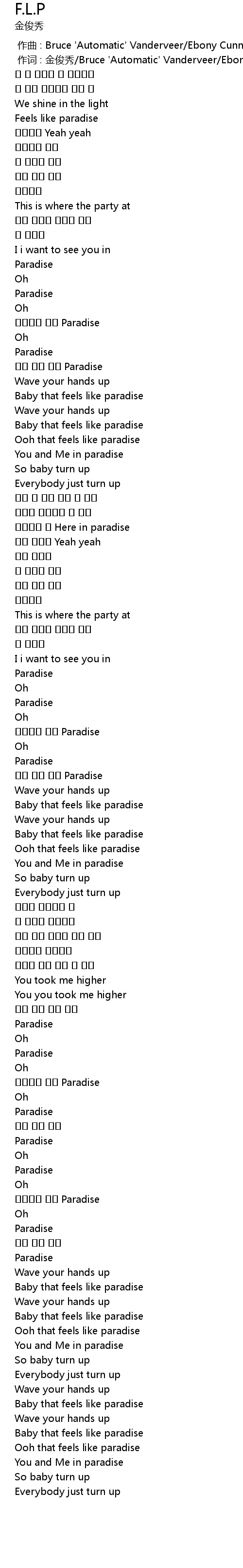 | [00:01.00] | 作词 : 金俊秀/Bruce 'Automatic' Vanderveer/Ebony Cunningham |