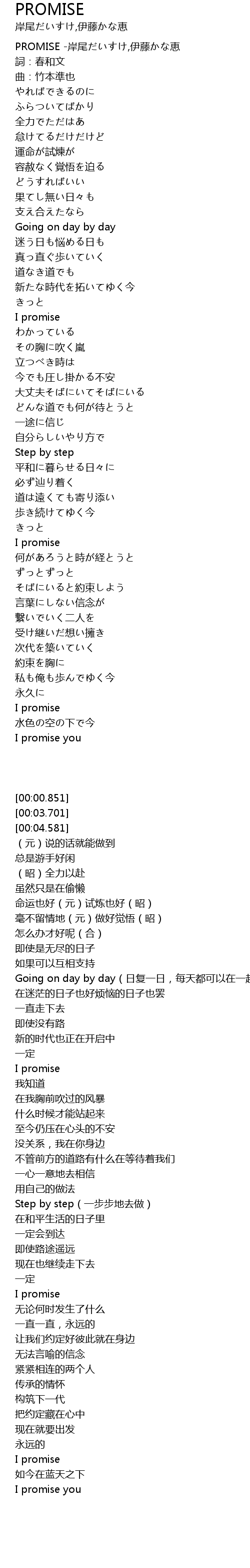 | [00:00.851] | PROMISE àn wěi, yī téng huì |
